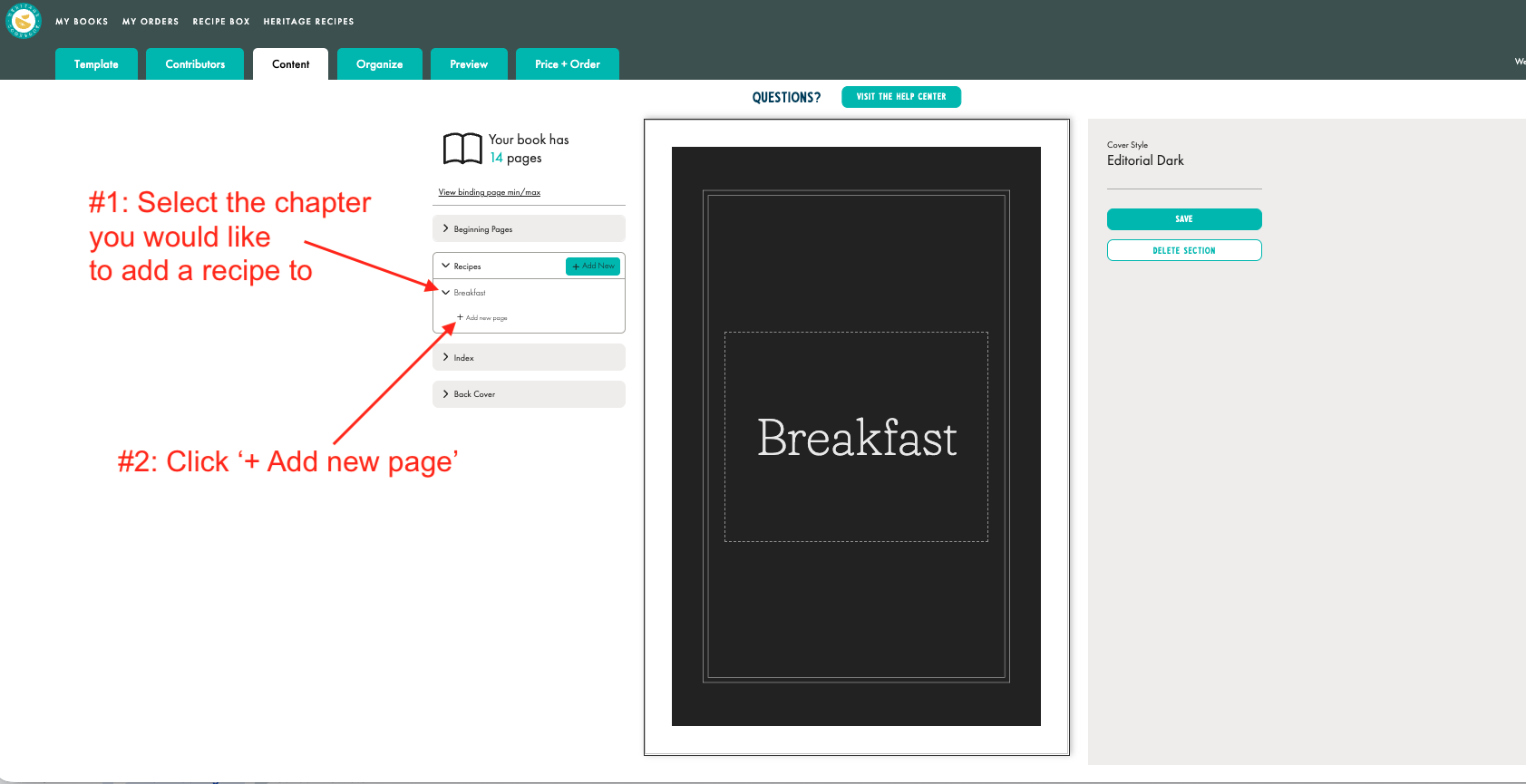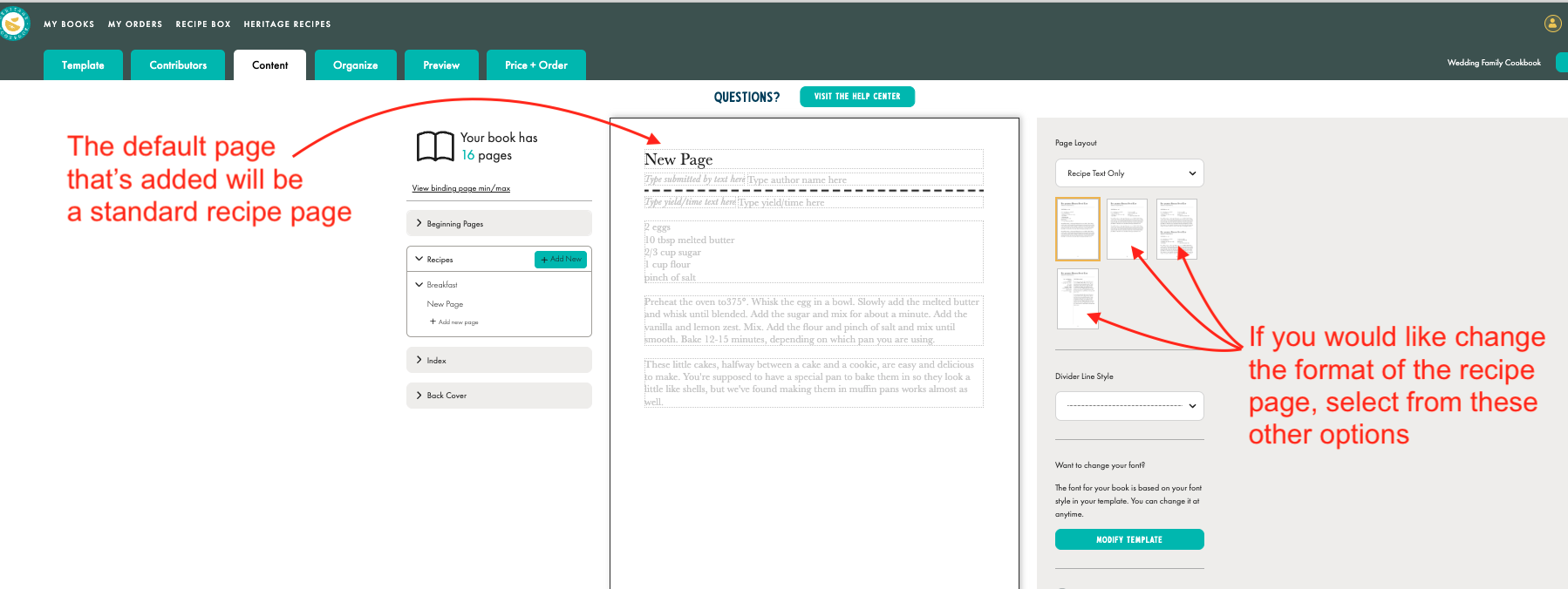 You can add new recipe pages (and other page types) at any time while building your cookbook.