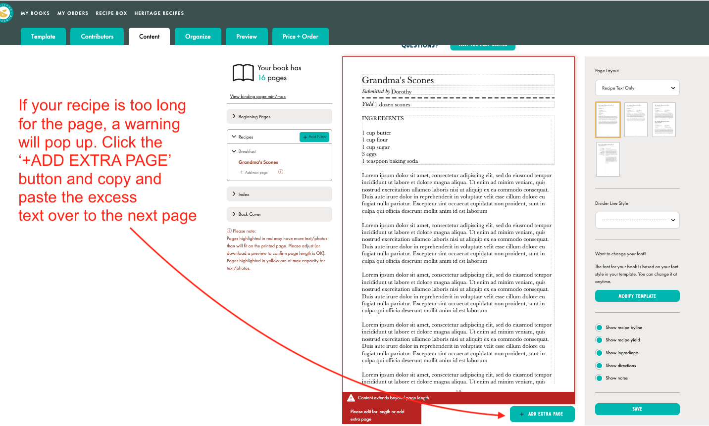If your recipe text exceeds the available space, you’ll see a red warning message.