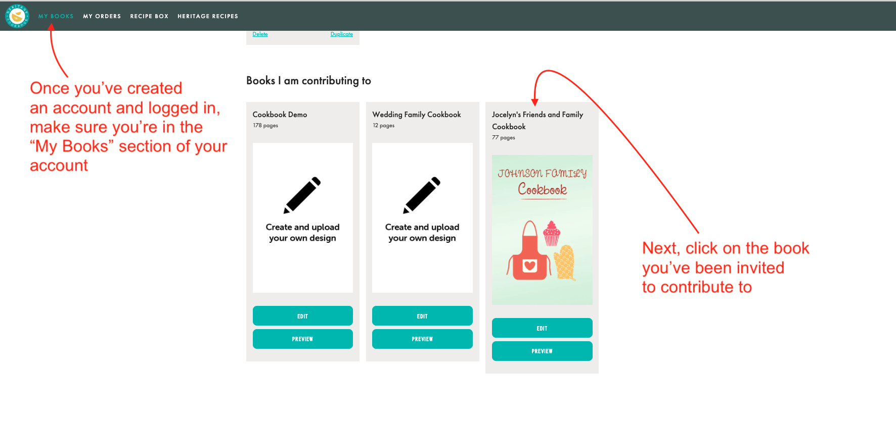Use these steps if a friend, family member, or co-worker has invited you to contribute a recipe to their Heritage Cookbook.