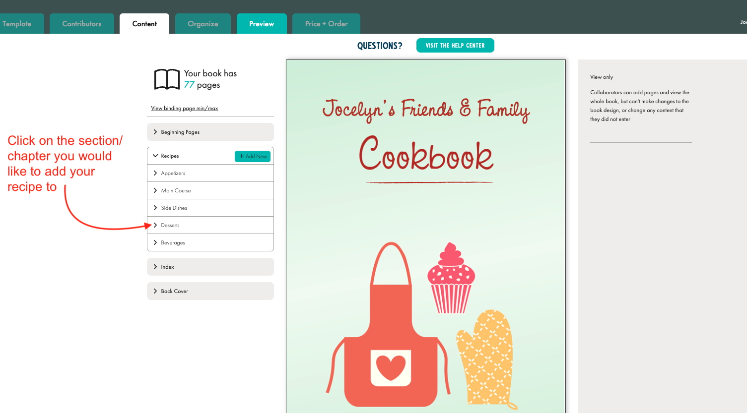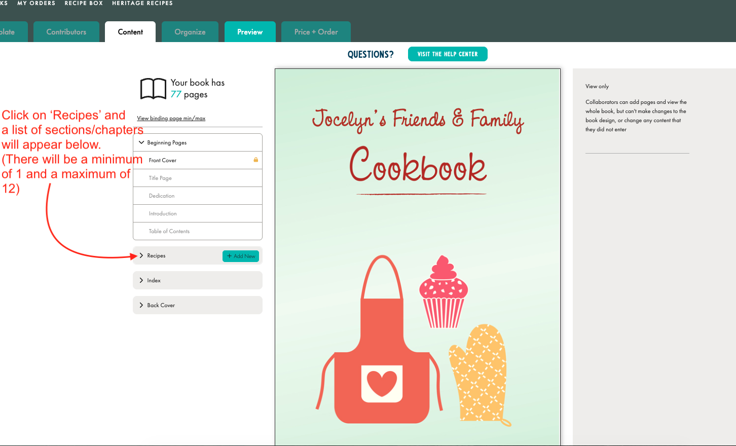 As a contributor, you can add recipes, but you can’t delete pages or edit other parts of the book.